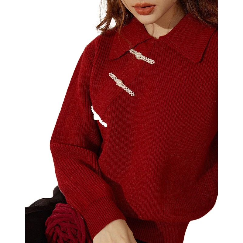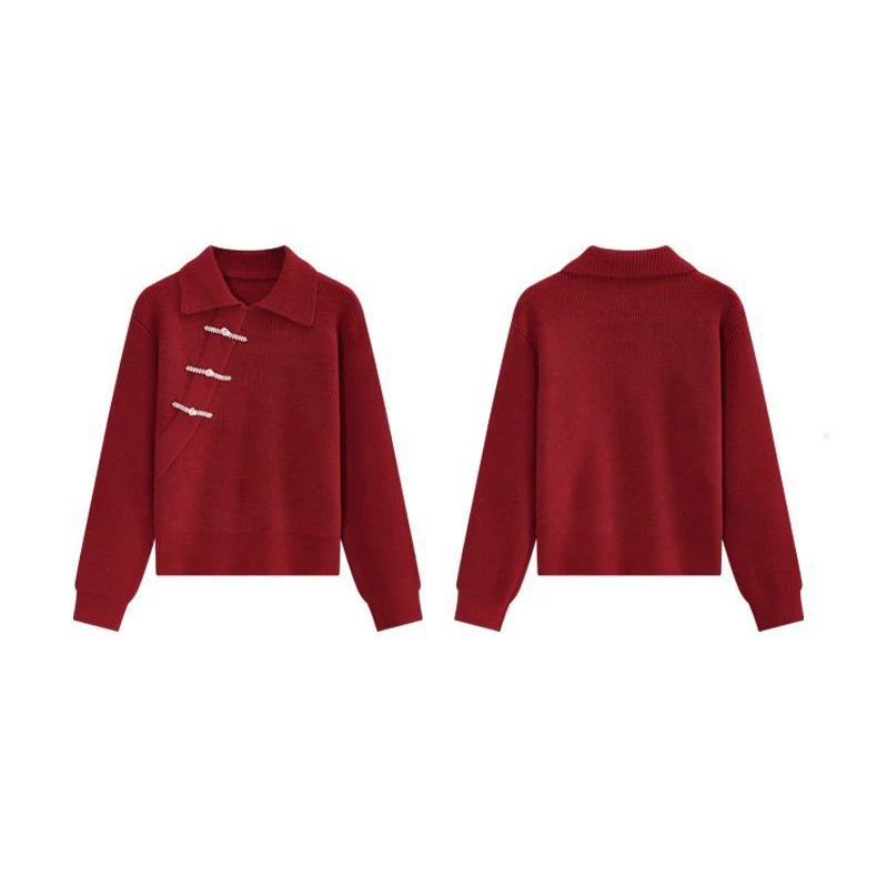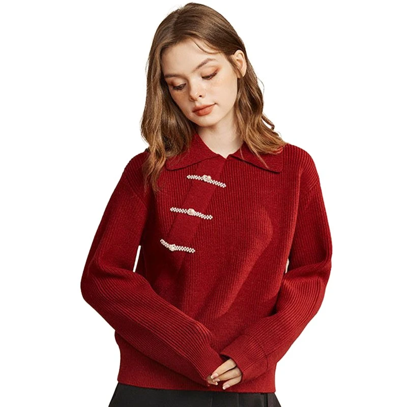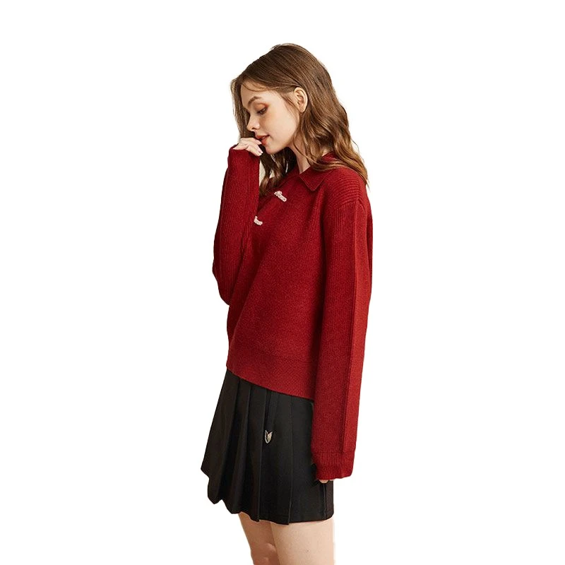 महिलाओं का पोलो बटन पुलओवर स्वेटर