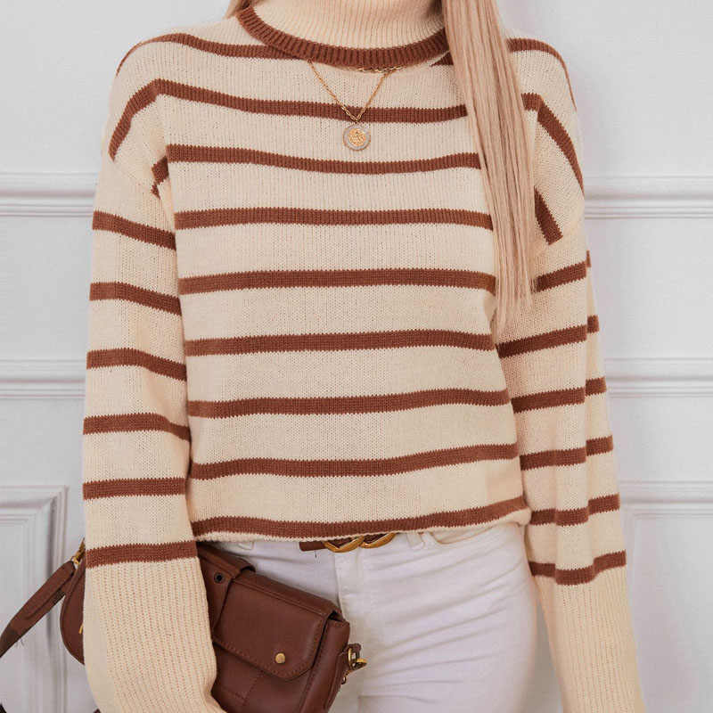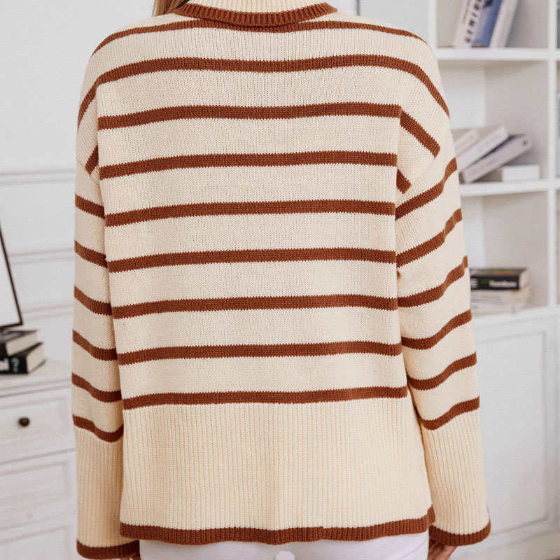 High quality Women Turtleneck Striped Sweater is offered by China manufacturer West Bull Bridge (Zhejiang), which is a sweater with comfortable fabric, soft texture and fashion.